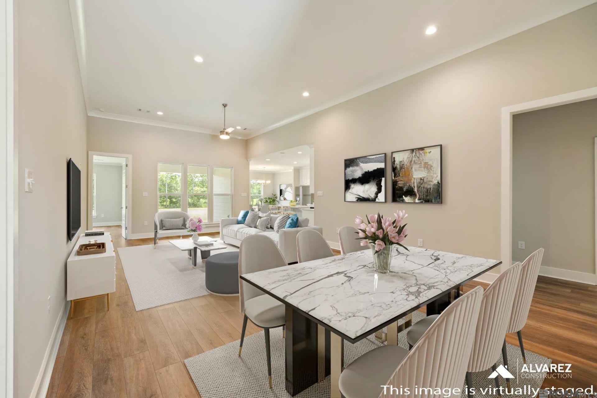 Estimated completion: 06/30/2026 The Larch is a single-story, 4-bedroom, 3-bath home featuring an open layout with 12' ceilings in the living and dining areas. The kitchen offers a chef's island, breakfast area, smart appliances, gas cooktop, wall oven, and walk-in pantry. The owner's suite includes dual vanities, garden tub, walk-in shower, WC, and large closet. Additional bedrooms are thoughtfully placed for privacy, with a full utility room near the garage. Upgraded the owners shower to a tiled shower